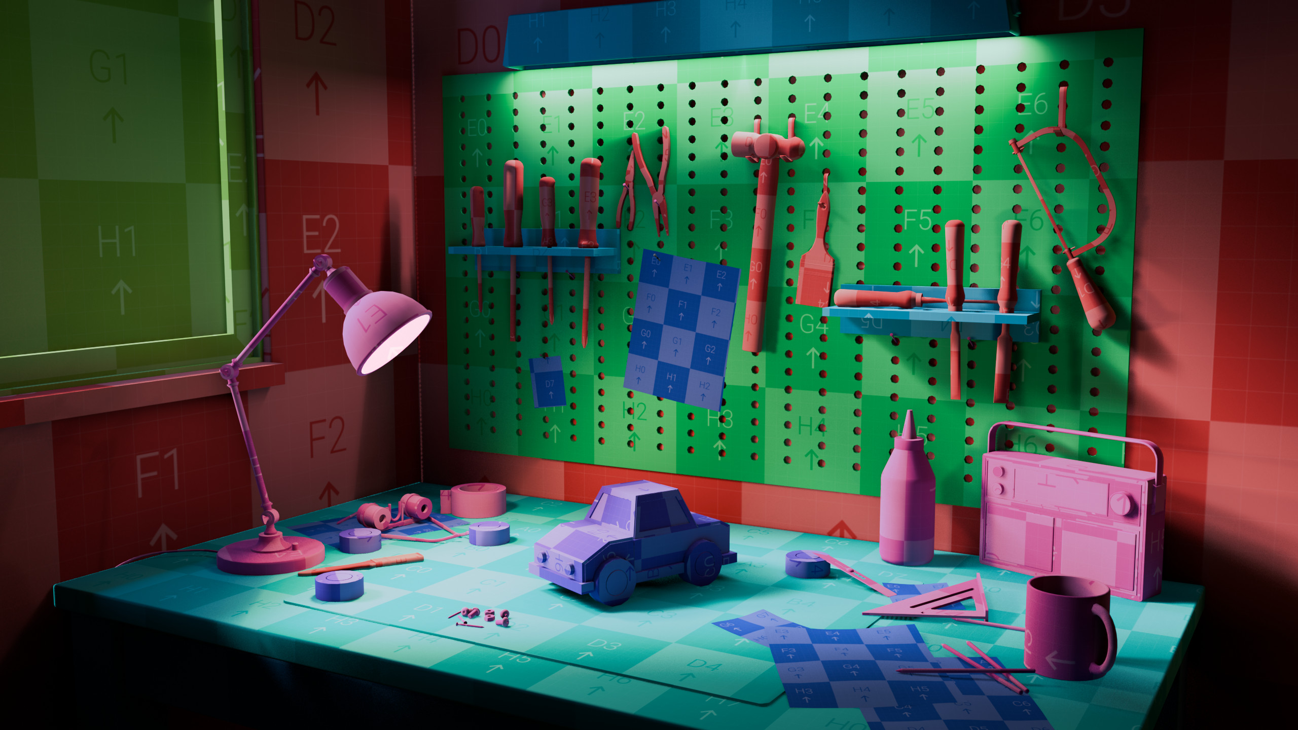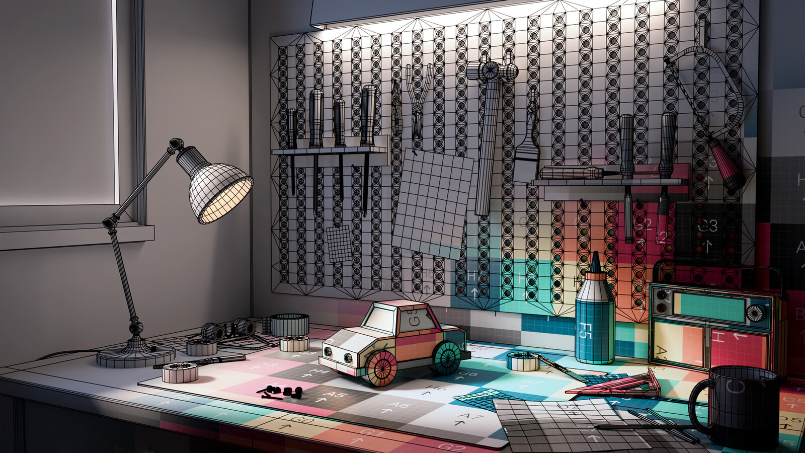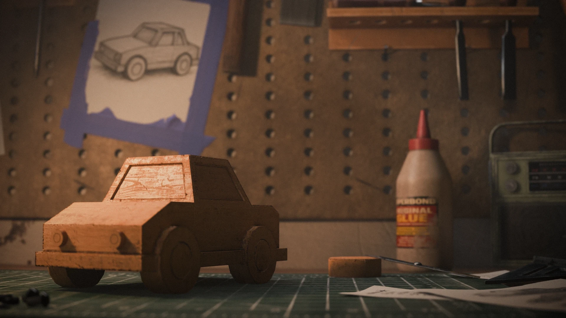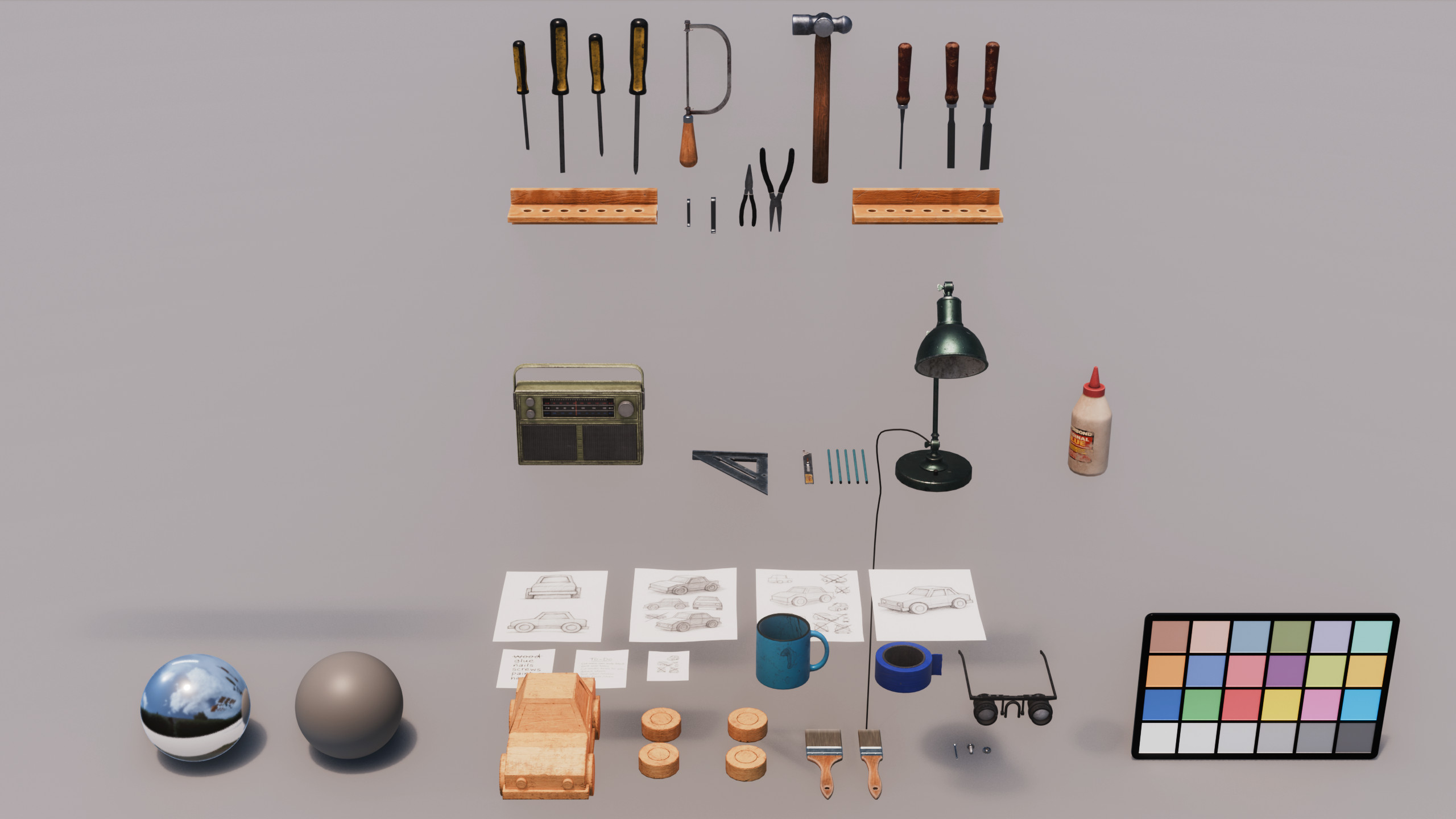 A game-ready woodworking workbench environment focused on material storytelling and real-time efficiency.